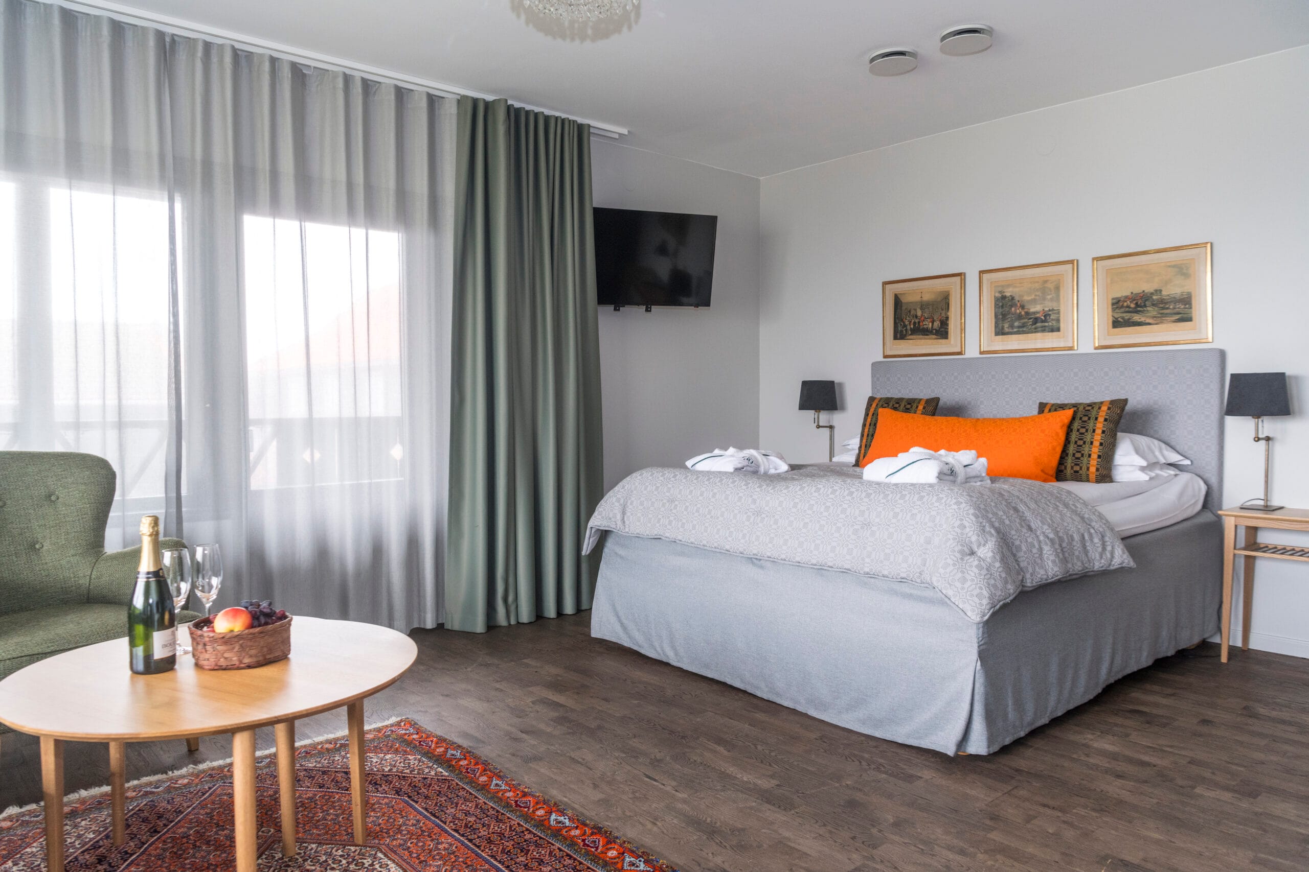 I vissa rum finns möjlighet att ta med barn, kontakta oss gärna om du vill boka med familjen eller om du vill försäkra dig om att få ett rum med just de faciliteter du önskar. Rummen ligger i restaurangbyggnaden.
